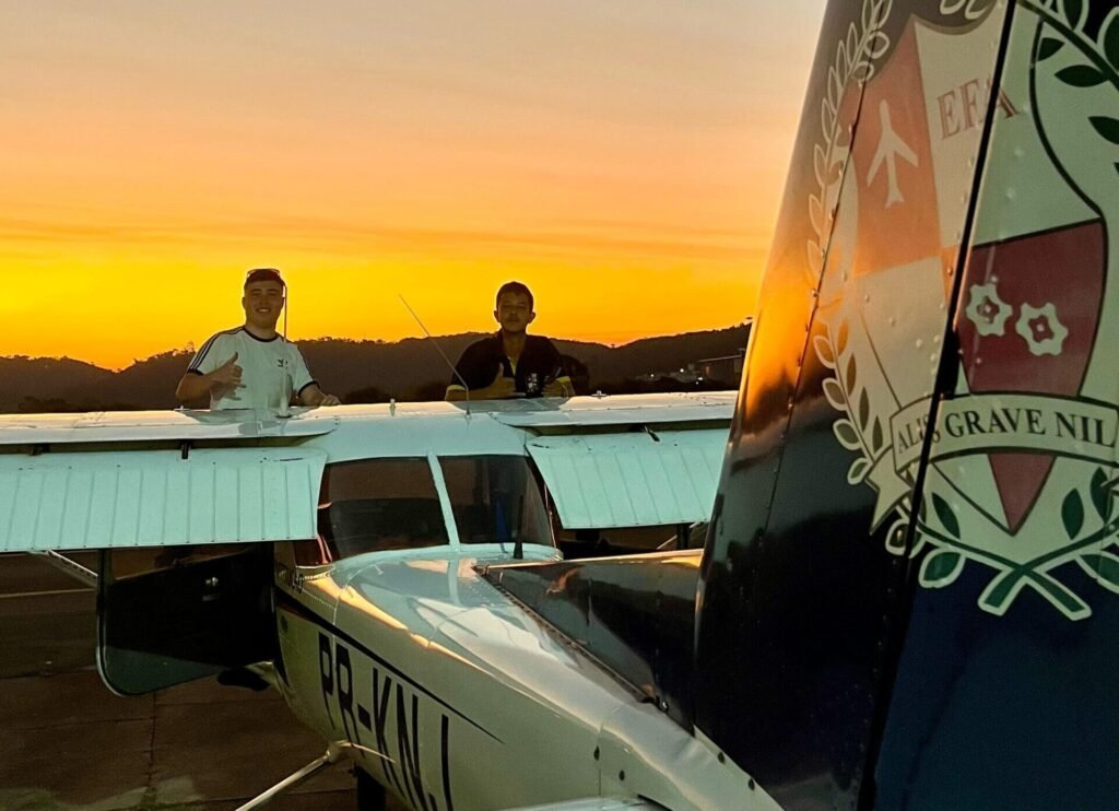 Tenho 21 anos e atualmente sou aluno do curso de Piloto Comercial MLTE IFR, caminhando para o curso de instrutor de voo (INVA). Só tenho a agradecer pela recepção e atenção de todos os profissionais da EFA, em destaque para os instrutores que estão sempre buscando agregar o máximo de conhecimento aos alunos, além de manterem sempre o clima de companheirismo dentro e fora da escola. Com todo o auxílio desses profissionais, sinto-me preparado para no futuro também poder repassar o mesmo padrão de ensino que recebo aqui.